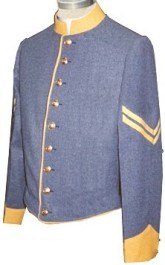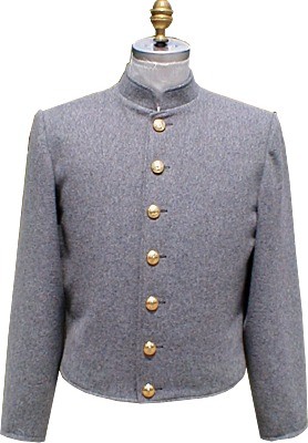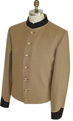 The Plain jackets are made in Medium Grey or Brown Grey wool colors and different Wooljean colors. All are cotton lined and most feature a nine button front, however, other button amounts are available at extra cost. Specify Branch of Service Color: Red - Artillery, Yellow - Cavalry, Sky Blue - Infantry, French Blue - Infantry (French Blue was used in both the Eastern and Western theatres of the War.) or Black - Militia.
