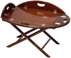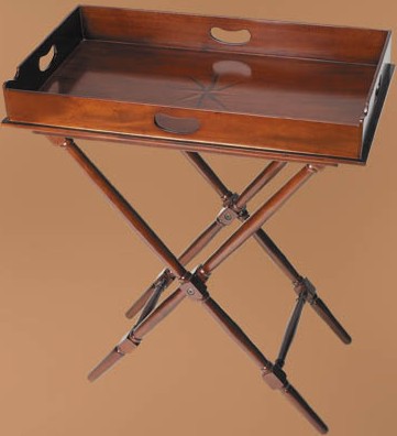 They trays have a highly detailed Mariner's Star as intarsia and are made for easy set-up and storage, the trays are detachable from the collapsible folding legs. They have classic handgrips and 19th Century (1800s) ergonomics. British officers didn't want to campaign without being able to enjoy their afternoon tea and loved to bag a tiger or two between battles. To keep at least a semblance of home-sweet-home comfort, the pack train carried furniture for the officers and staff. They were made of solid mahogany or rosewood with indestructible brass hardware. These are pure and true replicas of the furniture that made life worth living back then. British Butler Table: This tray has two serving options: fold up sides for compact look and fold down sides for maximum serving space. Beautiful brass detail. Cape Town Field Table: This is the same as the British Butler Table, except in a larger size. Dickens Desk with Pullout: Writing desk with 3 drawers and pullout. This is a good size desk and very functional desk, it is much larger than a normal travel desk. In fact I use one for my personal desk at home.